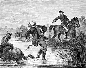 Description: Death of Australian bushranger Captain Thunderbolt, wood engraving, 23.3 x 33.0 cm.