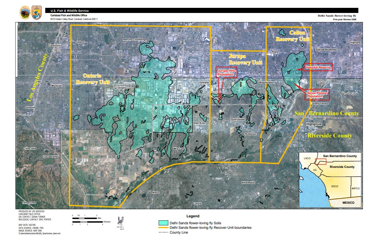 Title: Delhi Sands Flower-loving Fly Recovery Unit Map