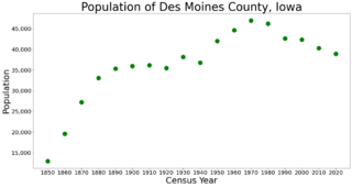 Description: The population of Des Moines County, Iowa from census data