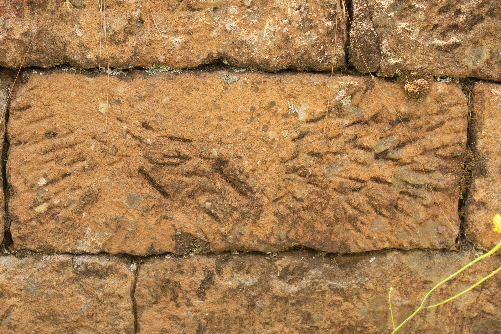 Description: Convict-built embankment, Mount McQuoid, Great North Road, Bucketty, NSW. Distinctive markings on cut stones have been used in archaeological studies to estimate the number of convicts in an 'iron-gang' i.e. offenders sentenced to work in chains, or other metal restraining devices, on heavy labouring tasks like road-making. There are recognisable and recurring patterns, attributable to individual stone-cutters.