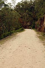 Description: Devines Hill, just past the Thomas James Bridge. At the foot of the hill, vehicular traffic joins a newer road, leaving the GNR to walkers and cyclists.