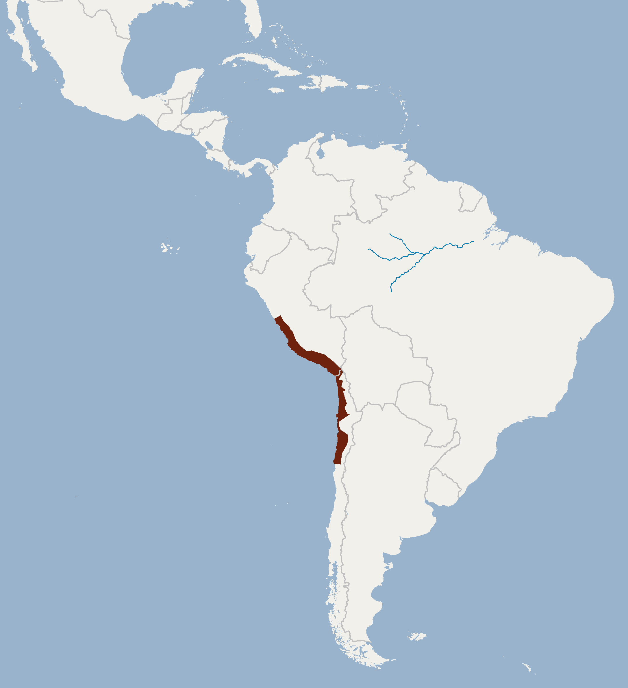 Description: Geographical distribution of Myotis atacamensis according to IUCNREDLIST.org