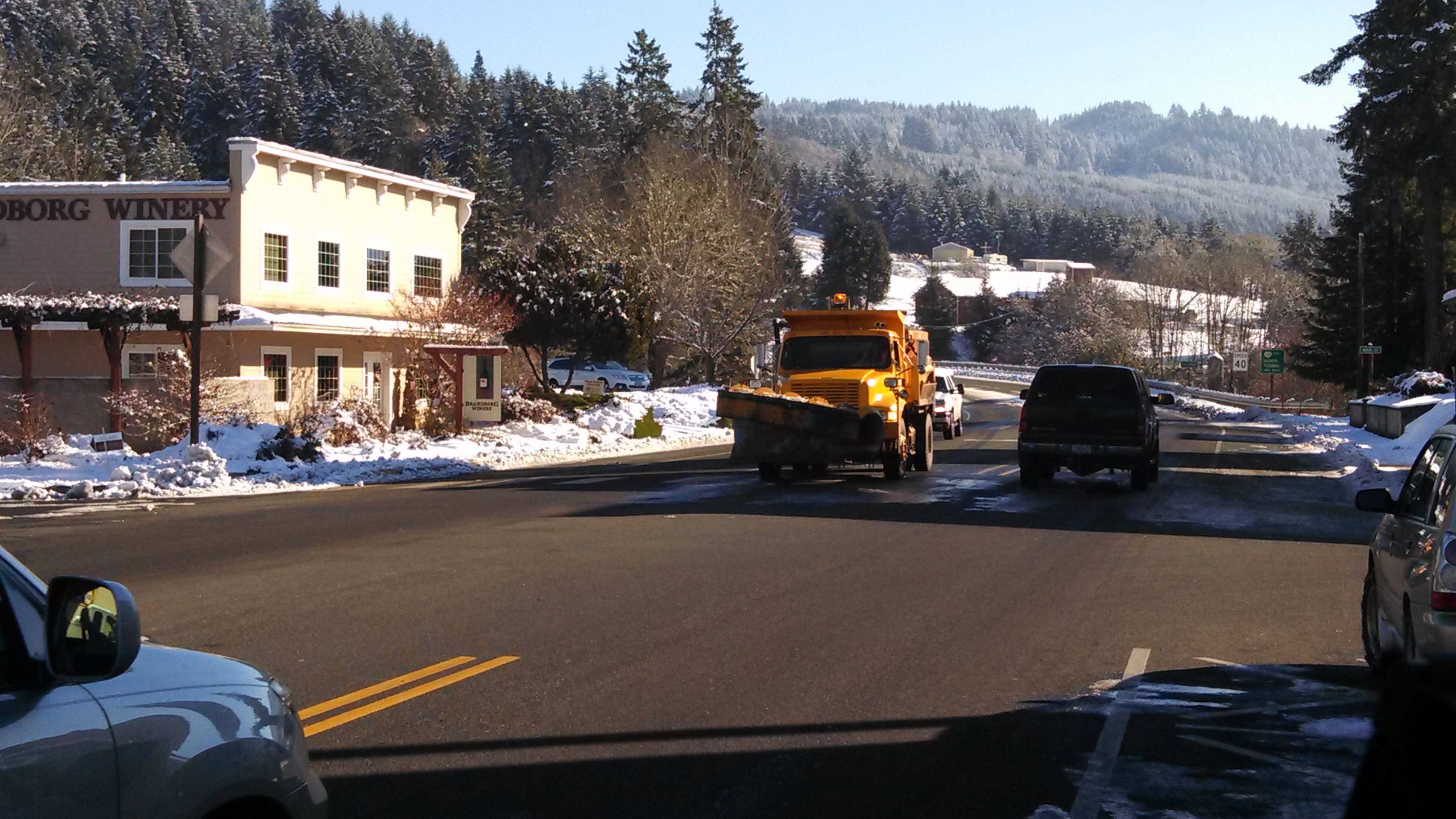 Description: ODOT crews in Douglas County worked all day Dec. 6 to break up snow pack and clear highways like Oregon 38.