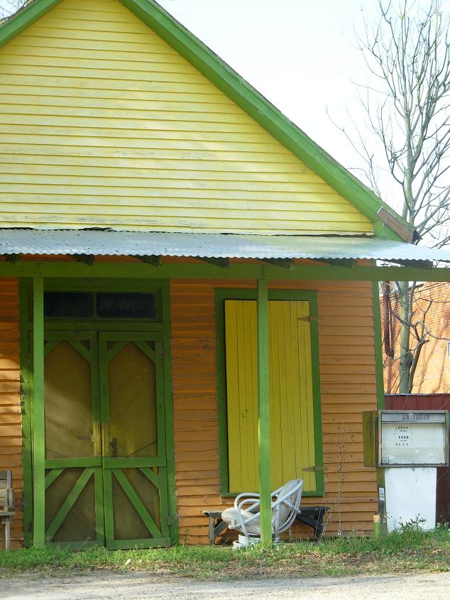Description: One of the brightly-colored buildings in downtown Waverly, Alabama. Rivers Langley, http://www.phoenixrivers.blogspot.com,
