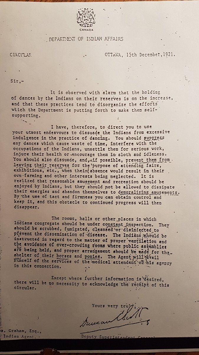 Description: Letter from head of Canada Department Of Indian Affairs To Staff