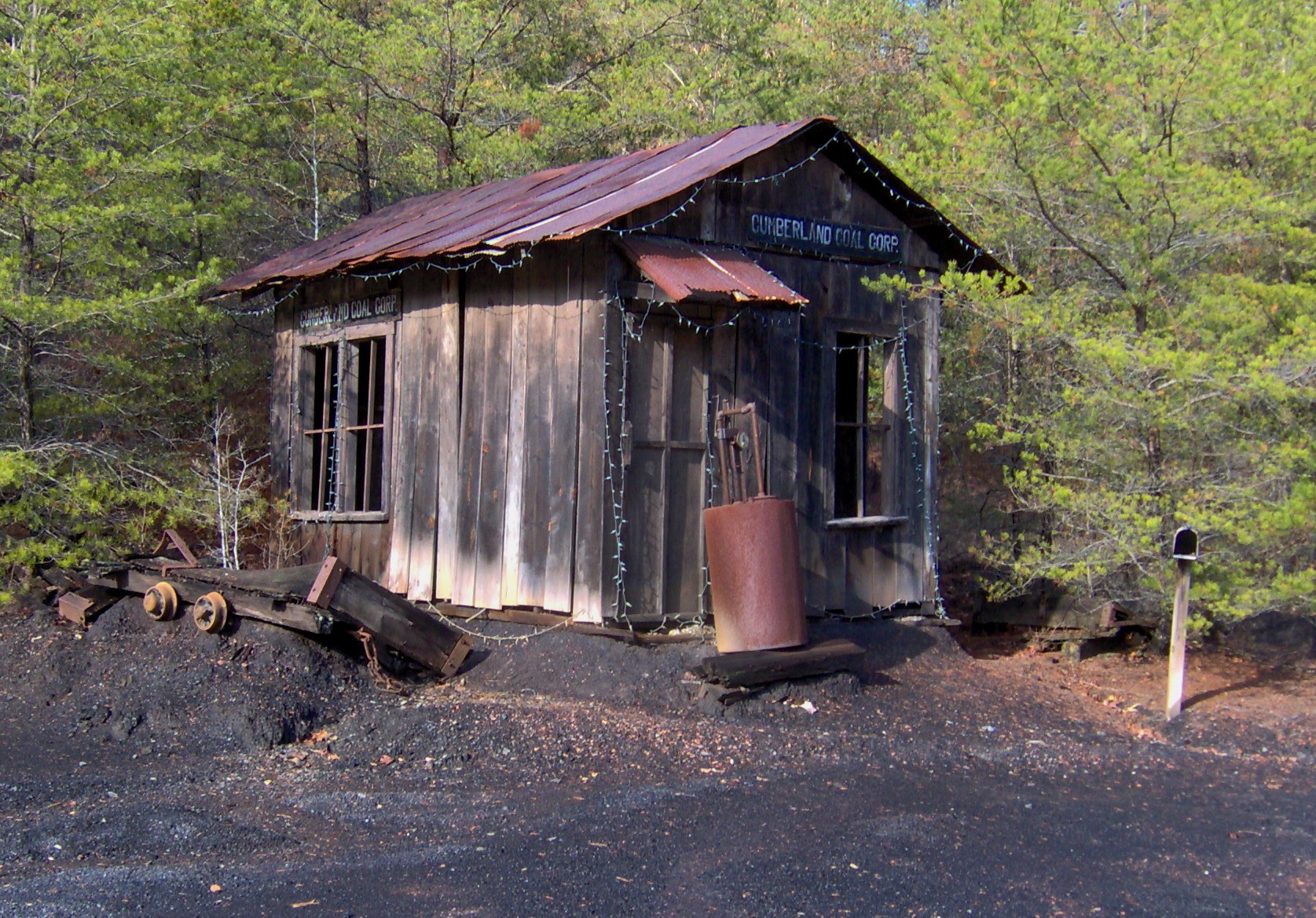 Description: Shed and tools on display at the mine replica at Dunlap Coke Ovens Park in Dunlap, Tennessee, USA.