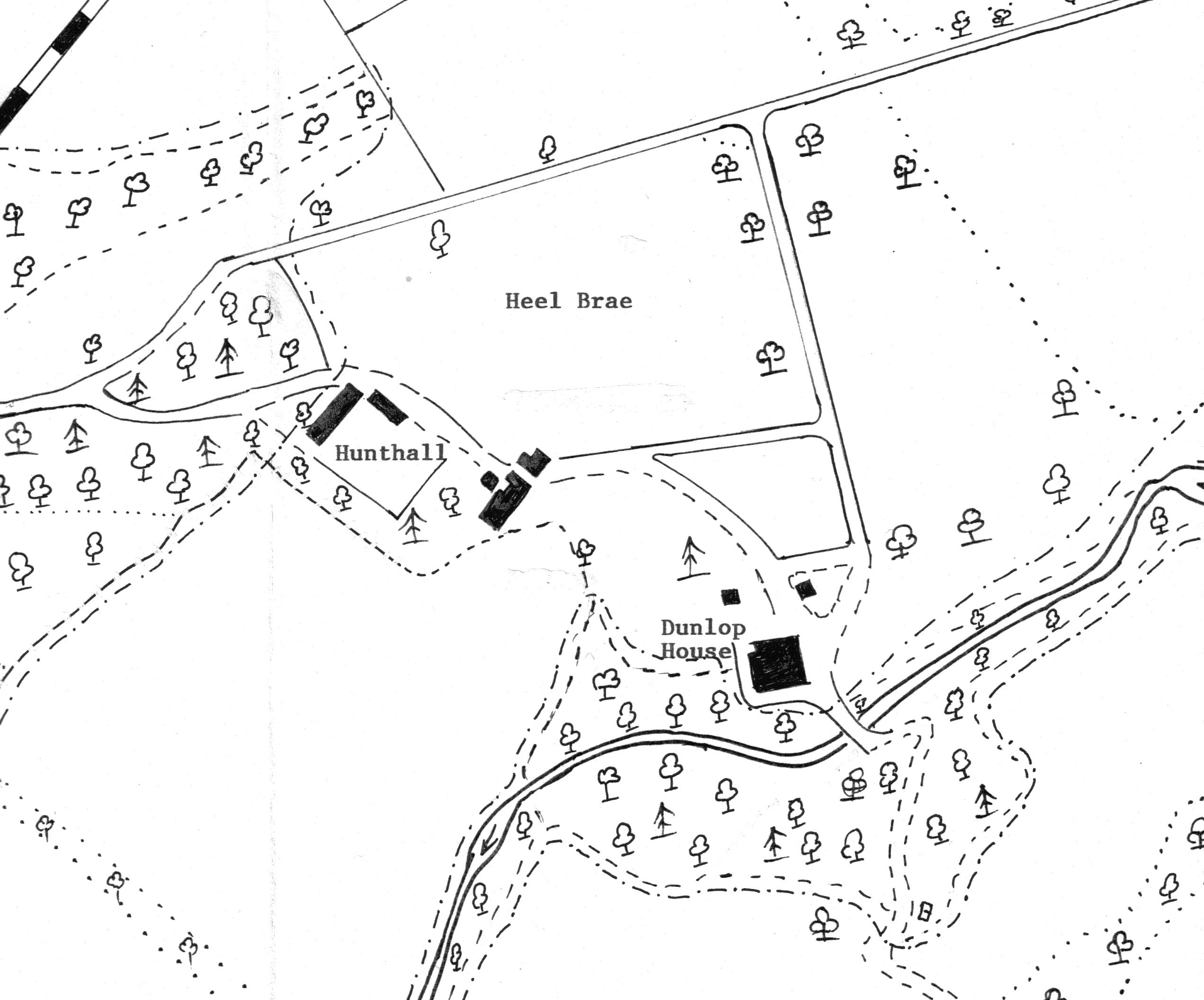 Description: A map of Dunlop house and Hunt hall near Dunlop, East Ayrshire, Scotland.