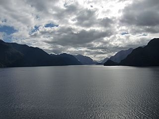 Description: Dusky Sound - New Zealand - Seen from the deck of a cruising ship (Rhapsody of the Seas)