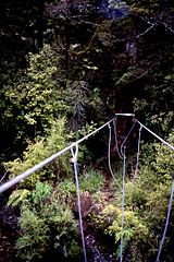 Description: 3 wire swing bridge at Dusky Track in New Zealand.