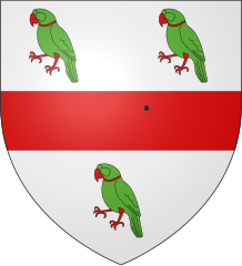 Description: Coat of arms of the Earl of Scarbrough: Argent a fesse gules between three parrots vert, collared of the second