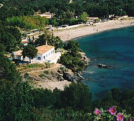 Description: Cala Montjoi, Roses. In the foreground, the "Casa del General", next to El Bulli a Michelin 3-star restaurant run by chef Ferran Adrià