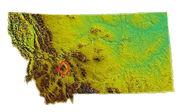Description: Location map of the Elkhorn Mountains, Montana, USA