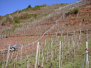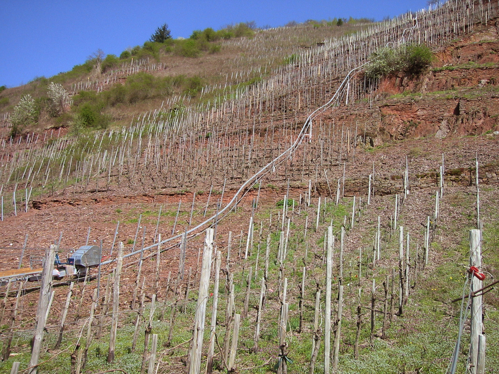 Description: Ediger Elzhofberg – Nur mit Betrieb einer Monorackbahn ist die alte Steillage wirtschaftlich.