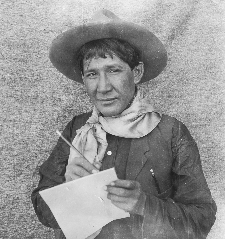 Description: Ernest Spybuck, Absentee Shawnee Artist, ca. 1910. Photo taken during fieldwork sponsored by George Heye.