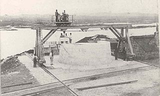 Description: Fitting of the blocks for en:Dubh Artach lighthouse near the quarry on the island of en:Erraid in the Inner Hebrides of Scotland circa 1870.