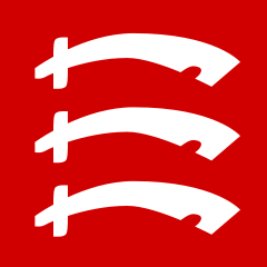 Description: Formation badge for Essex County Division, consisting of three white seaxes on a red field. Traced from IWM jpg scaled to 500%.