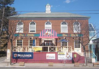 Description: Former Township of Etobicoke Council Offices on Dundas Street at Islington, now a pub. North side of Dundas Street West, west of Cordova Avenue. Toronto, Ontario, Canada.