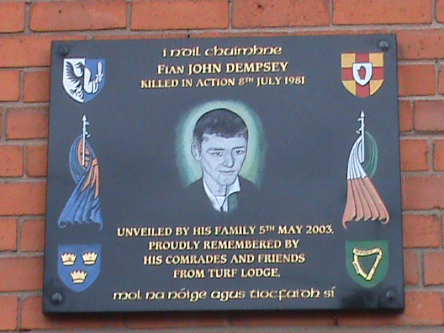 Description: plaque in memory of Fian John Dempsey - Belfast