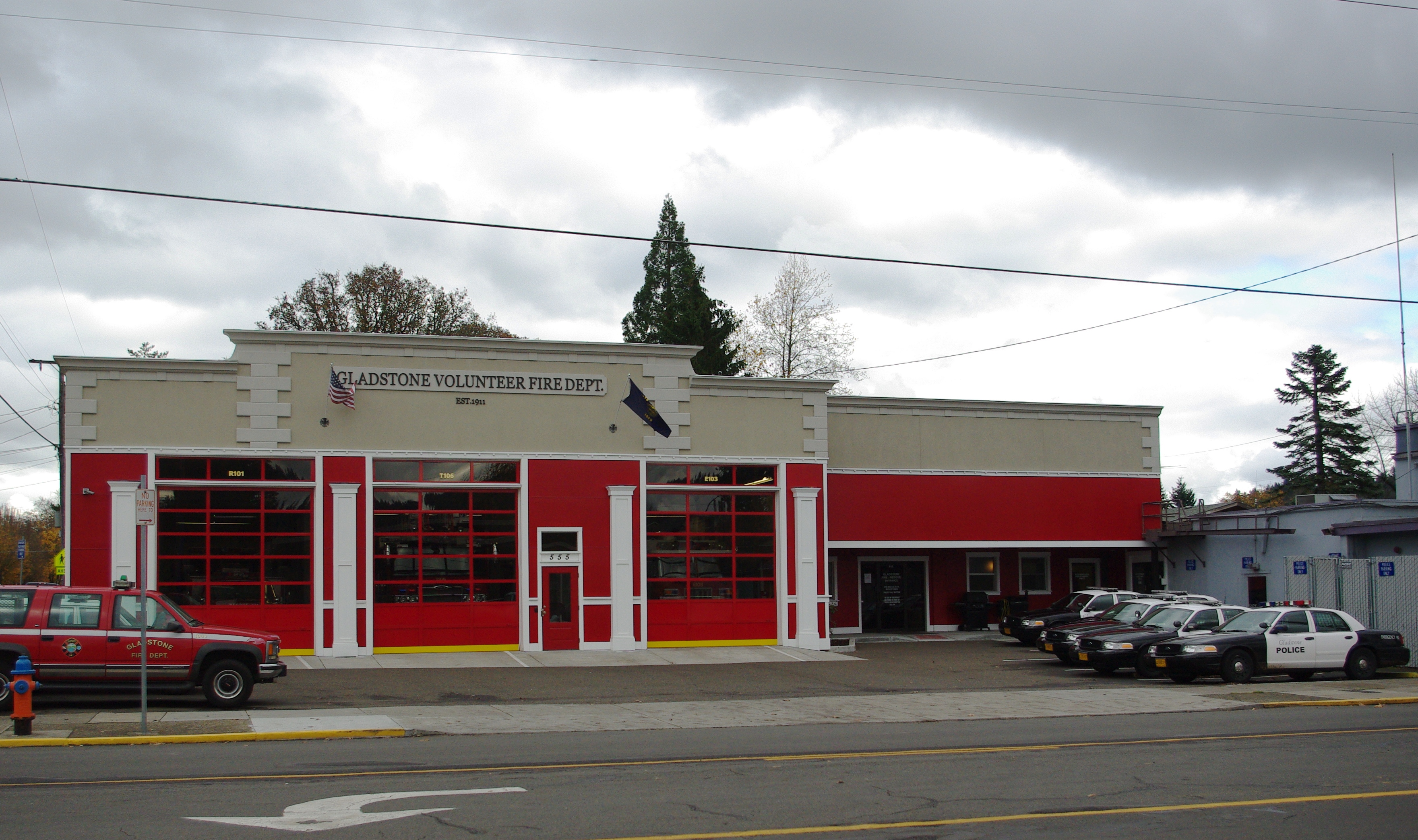 Description: w:Gladstone, Oregon, USA, fire and police station on Portland Street.