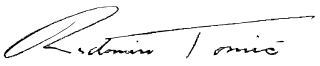 Description: Firma de Radomiro Tomic Romero (Calama, 7 de mayo de 1914-Santiago, 3 de enero de 1992) fue un político chileno.
