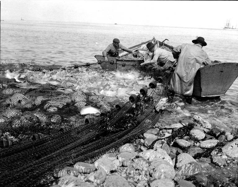 Image: Fishermen hauling a salmon seine, Karluk, Alaska, June 1906 (COBB 62)