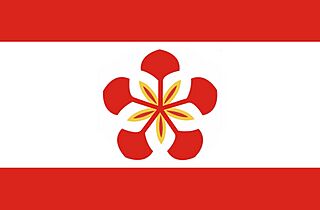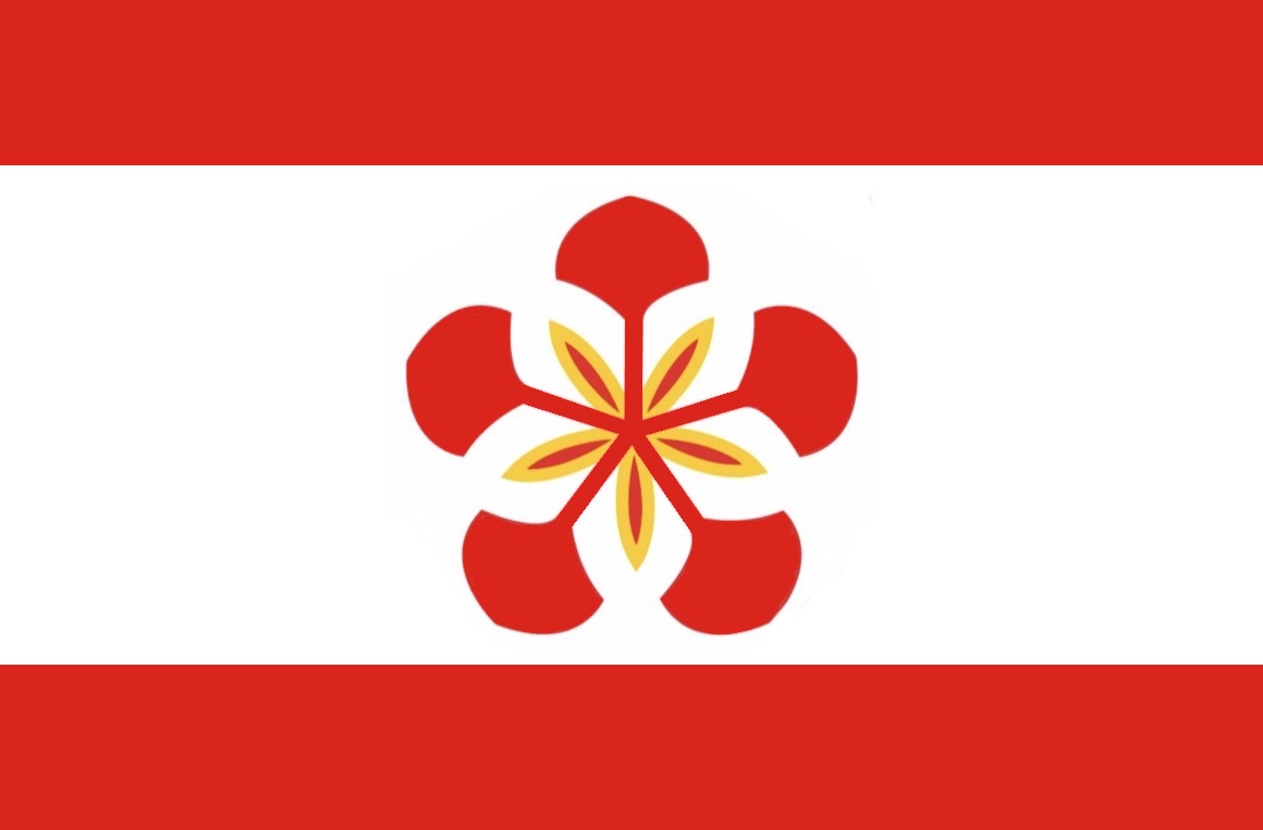 Description: Red Phoenix flowers on a white background with 2 red stripes. Often used by Hai Phong football fans.