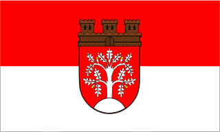 Description: Beschreibung der Flagge: "Die Flagge der Stadt Herdecke zeigt die Farben Rot-Weiß." Sie wird auch mit dem Wappen in der Mitte gezeigt.