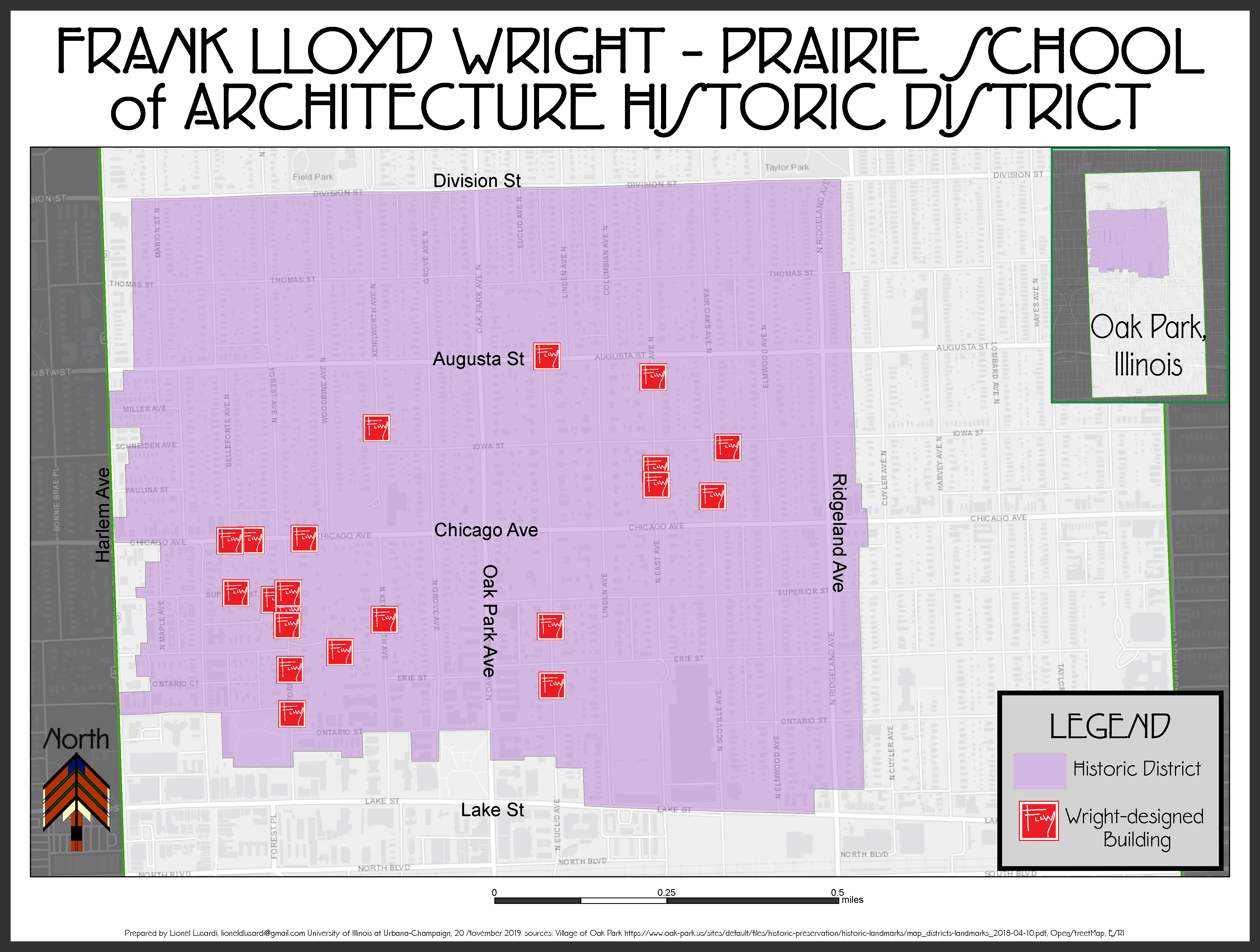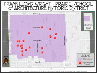 Description: A map of the Frank Lloyd Wright-Prairie School of Architecture Historical District in Oak Park, Illinois