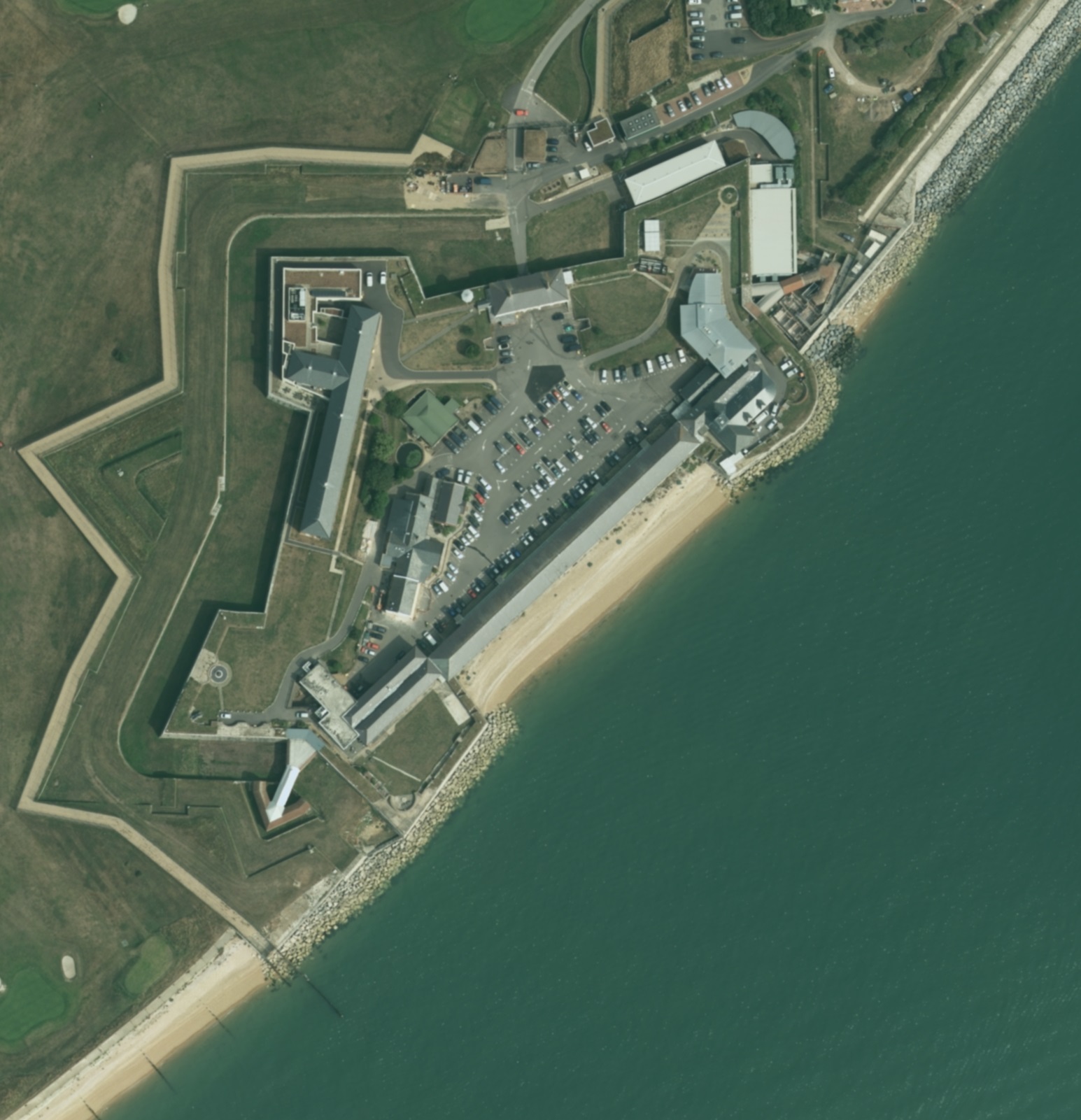 Description: Aerial view of Fort Monckton near Gosport, Hampshire, in 2013