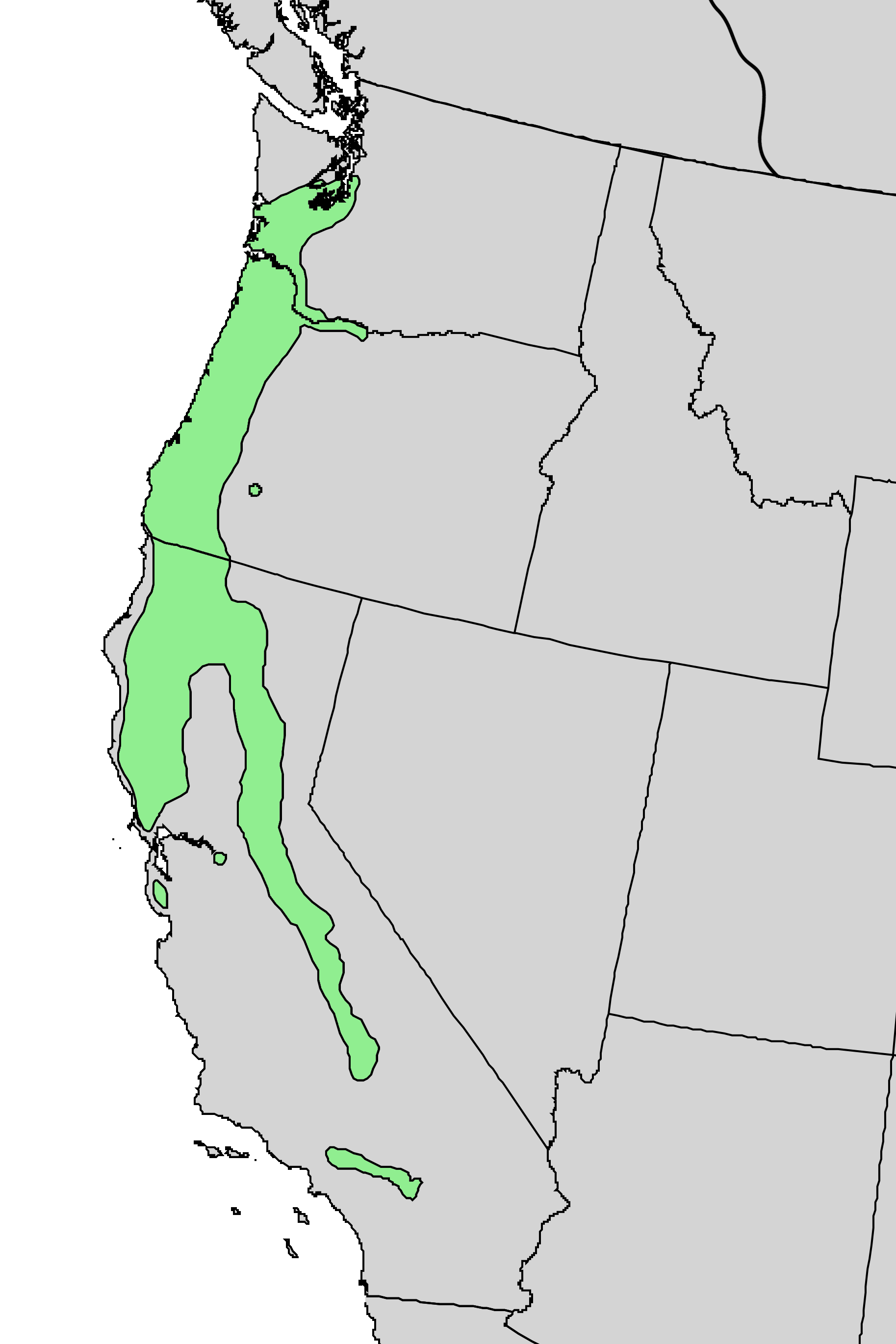 Description: Natural distribution map for Fraxinus latifolia (Oregon ash)