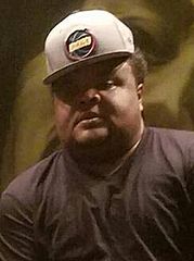 Description: Fred the Godson, standing on one foot at a recording session with Sir LLoyd and the Heatmakerz at a recording session in New York in late 2016.