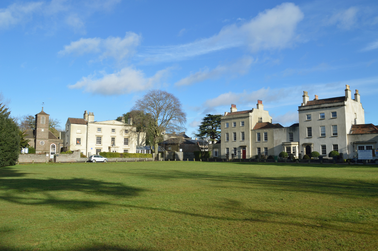 Description: North-east corner of Frenchay Common. The leftmost building is grade II* listed Frenchay Unitarian Chapel. Next to it is grade II listed c.17th The Old House. The two houses on the right are grade II listed late c.18th Bradford's House and House Adjoining.