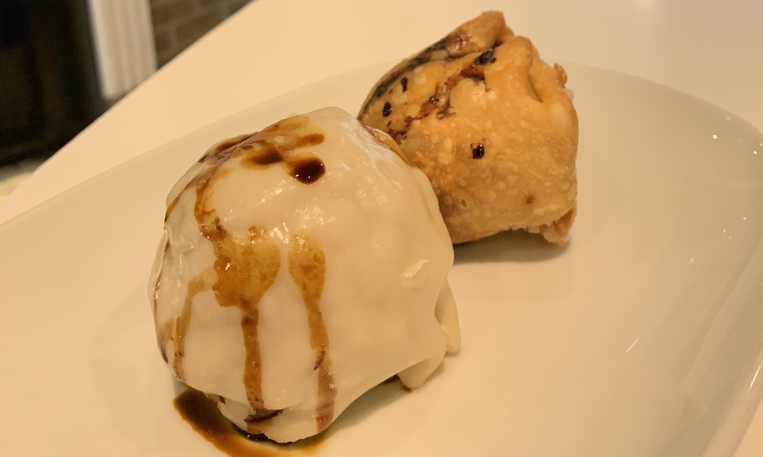 Description: One fried one steamed dim sim