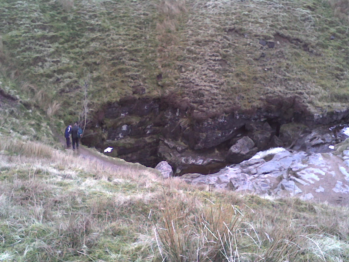Description: Gaping Gill, 105 m deep pothole (Ponor) where the stream Fell Beck flows into. North Yorkshire.