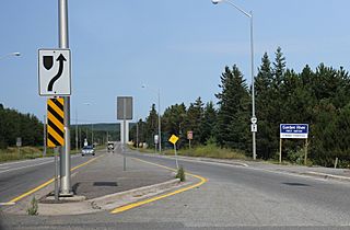 Description: The Garden River First Nation sign on Ontario 17B near Sault Ste. Marie. The sign was installed after a dispute between the tribe and the province. The tribe has installed this sign prior.