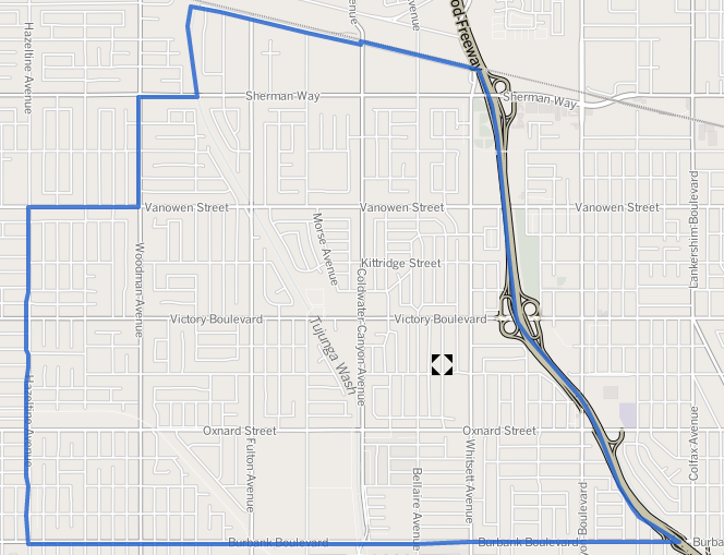 Image: Geographical boundaries of Valley Glen neighborhood, Los Angeles, California