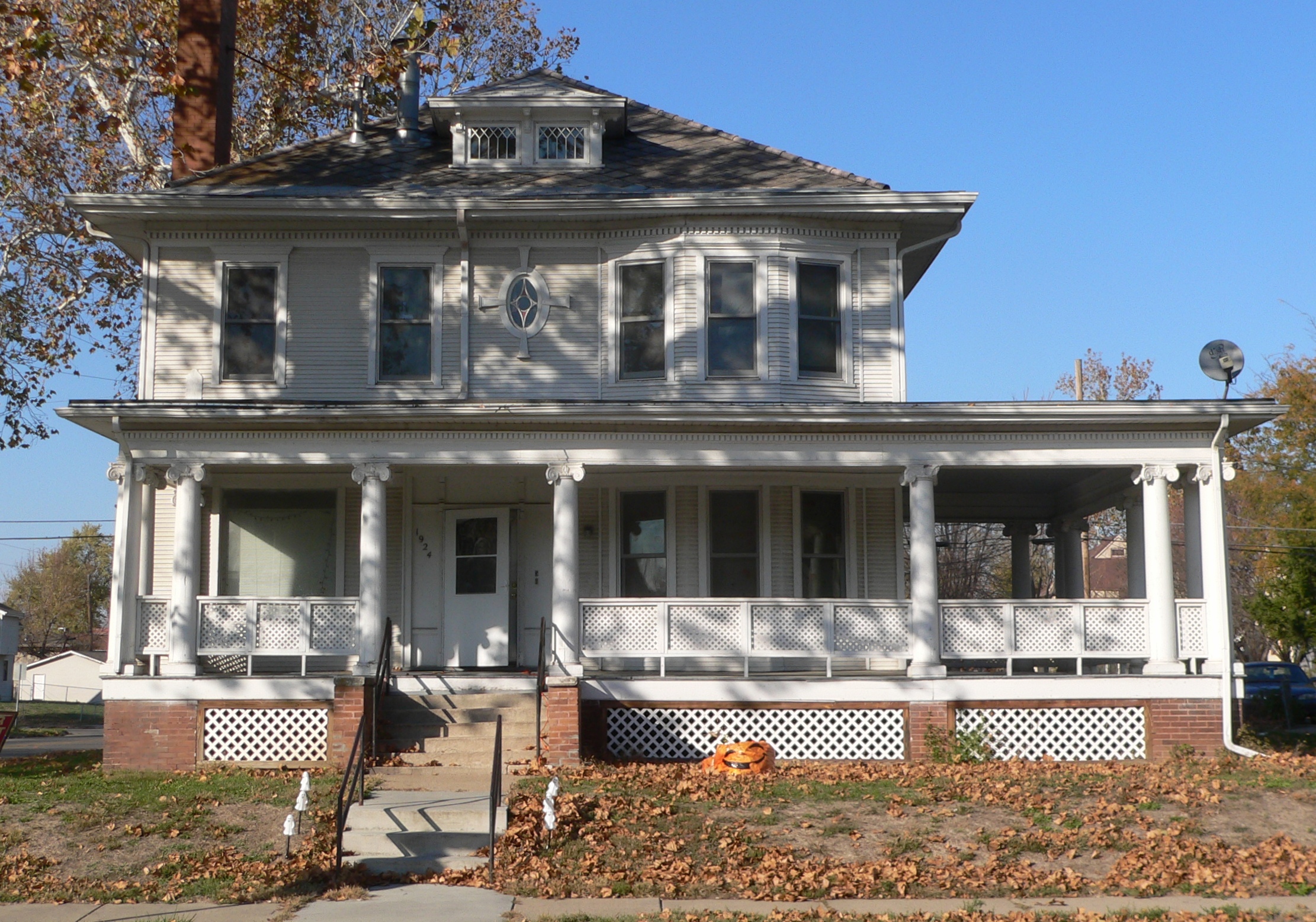 Description: George H. Kelly house, located at 1924 Binney Street (northeast corner of Binney and Florence Boulevard) in Omaha, Nebraska; seen from the south, across Binney.