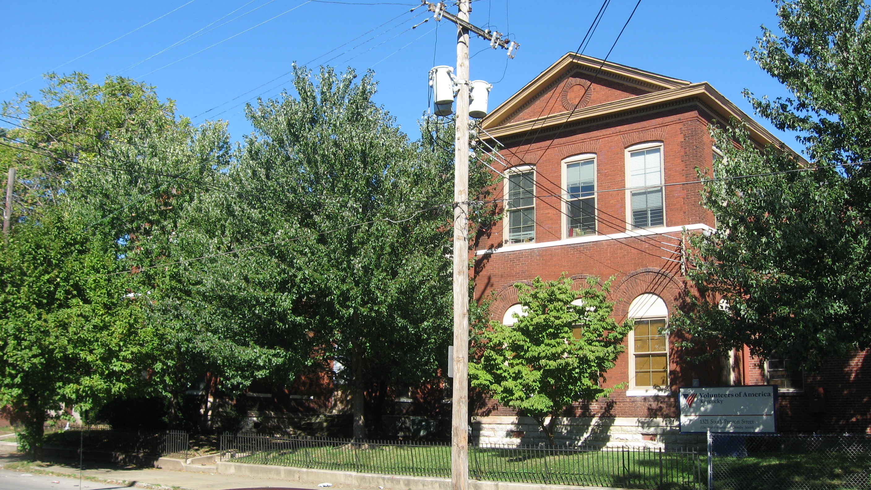Description: Front of the George H. Tingley Elementary School, located at 1311-1317 S. Preston Street in Louisville, Kentucky, United States. Built in 1892, it is listed on the National Register of Historic Places.