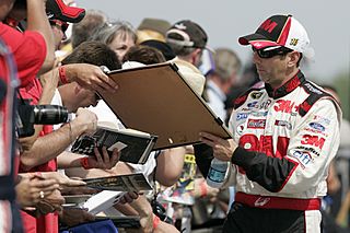 Description: 060608 Long Pond, Pennsylvania USA. Greg Biffle signs autograph to loyal Ford Racing fans along pit lane of the Pocono International Raceway before qualifying. For more, visit www.fordracing.com. Autostock