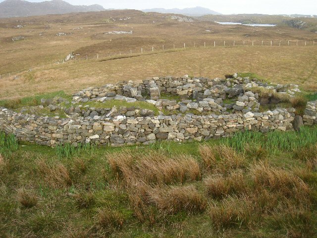 Description: Grimsay Wheelhouse This is possibly the best preserved example of a wheelhouse on North Uist and is not shown on the OS maps. Difficult to find, it is located between Loch Hornary and the north coast of Grimsay. It dates from the Iron Age. Grimsay, Outer Hebrides, Scotland.