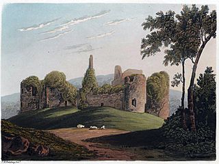 Description: 19th century print of Grosmont Castle, balanced