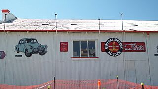 Description: "Holden Wall of Fame", Bailey's Garage, Gunning New South Wales. Painting depicts 1948/215 model, often referred to as "FX", from which was developed the famous FJ in 1954.