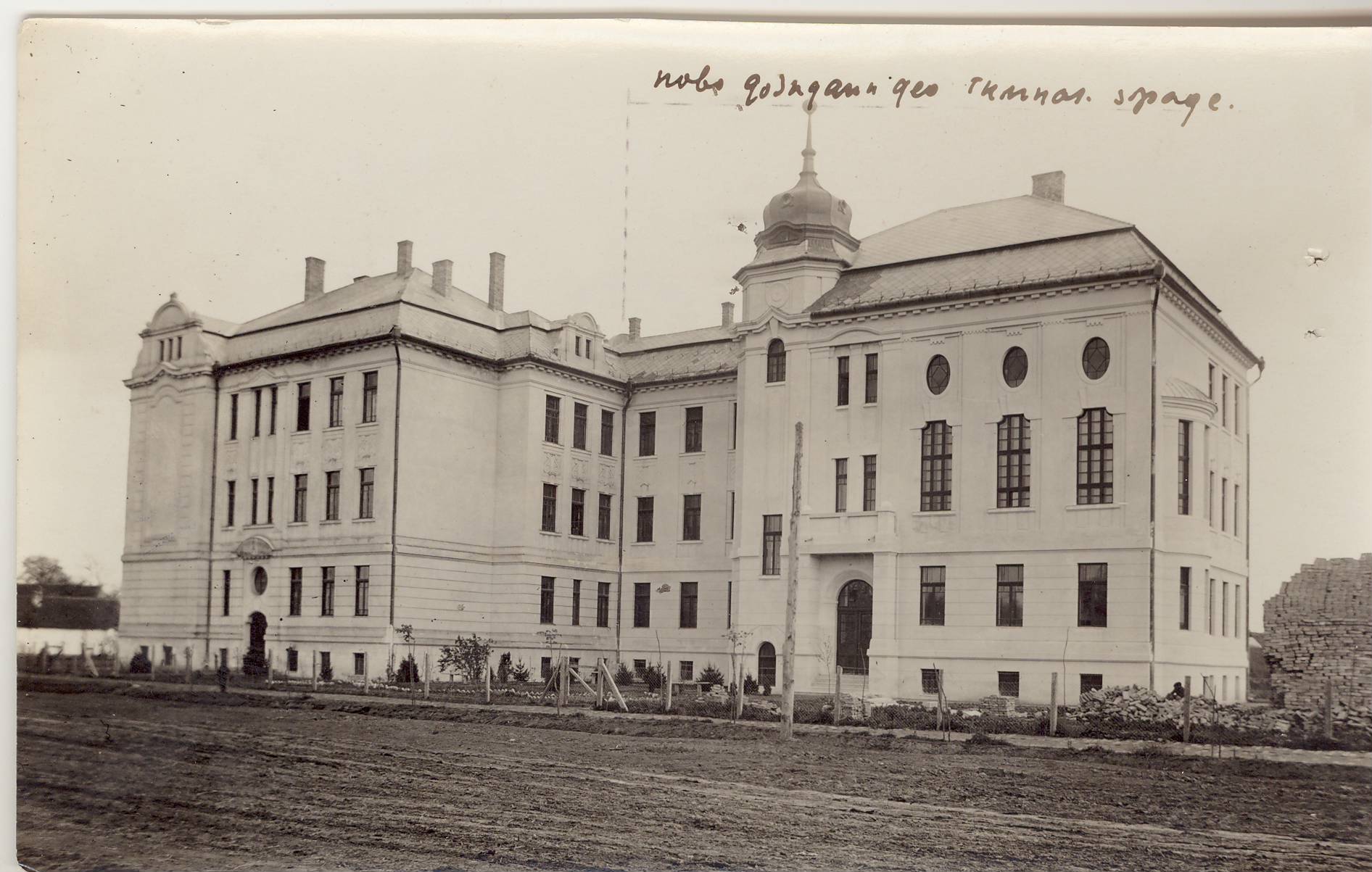 Description: The building of the Jan Kolar gymnasium in Bački Petrovac, first half of the 20th century. Museum of vojvodinian Slovaks, inventory number 1692.
