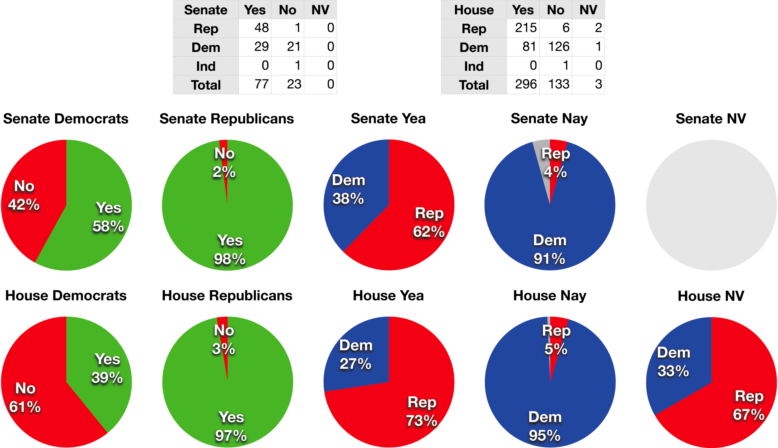 Description: A chart representing the Senate and House votes for the H.J.Res. 114, the Iraq Resolution of 2002.
