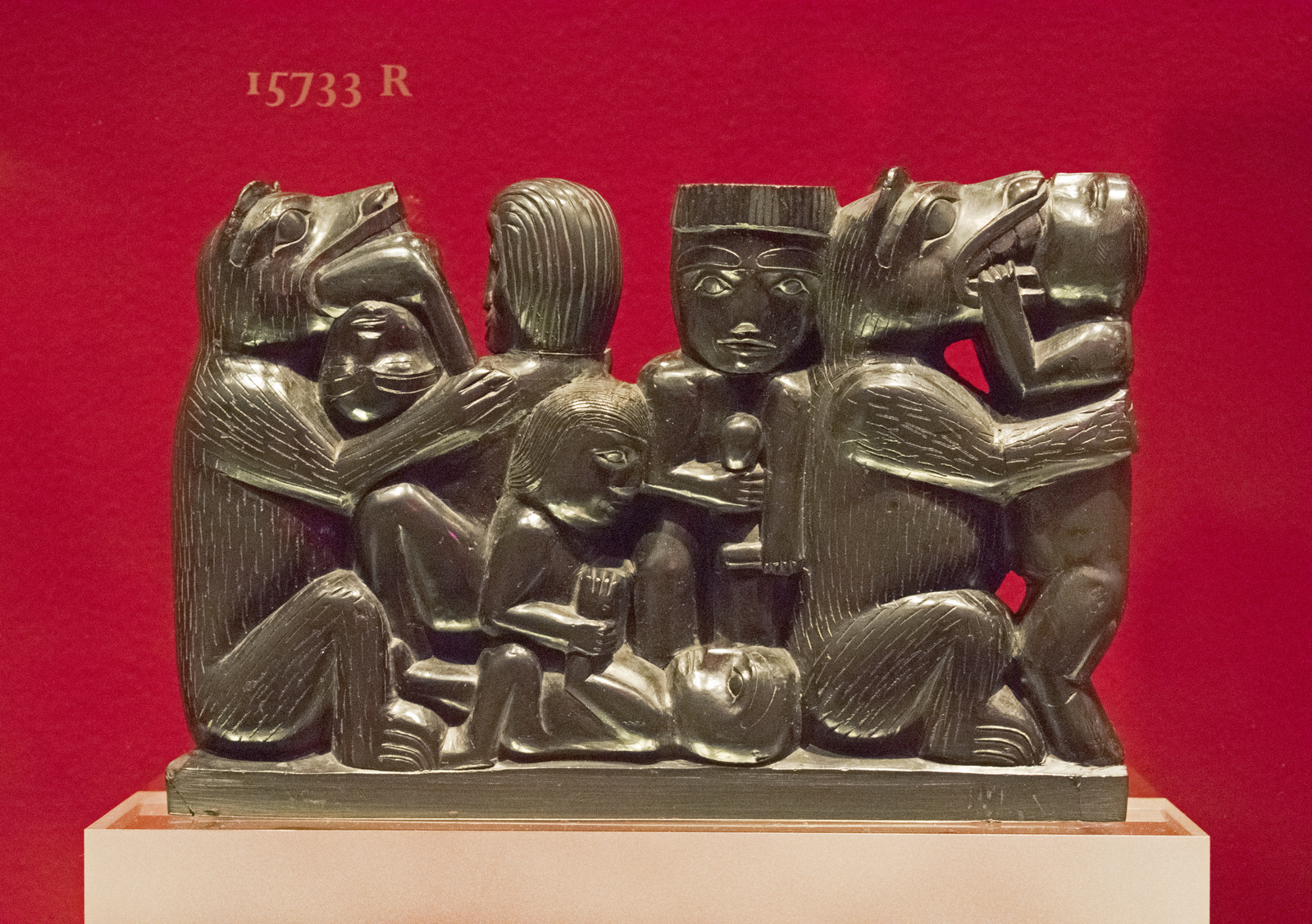 Description: Haida argilite figure group, 1880-1900, Royal British Columbia Museun