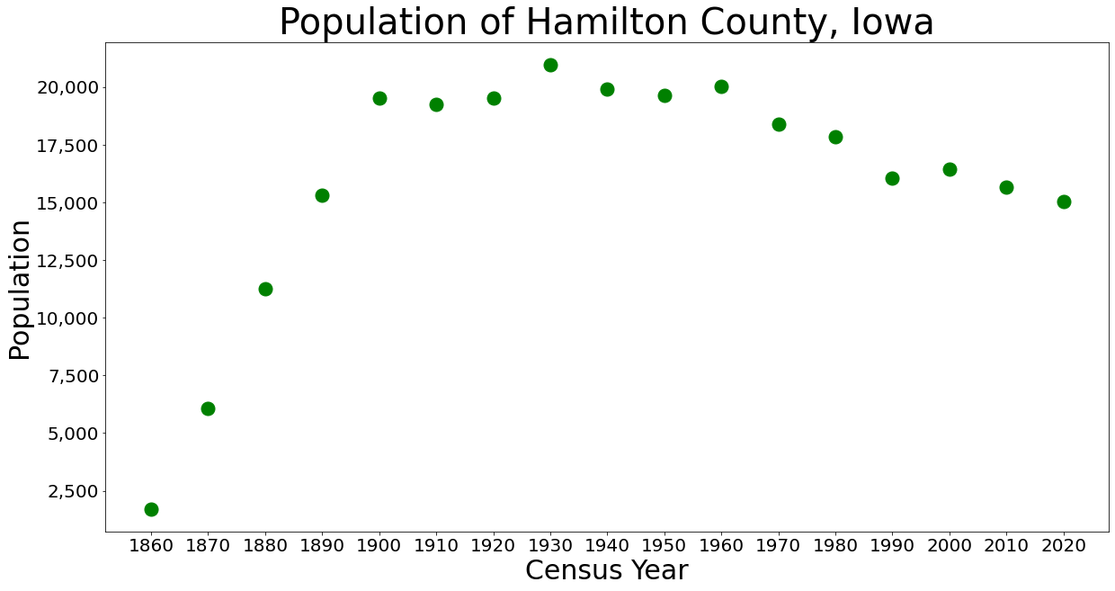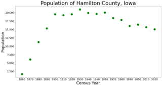 Description: The population of Hamilton County, Iowa from census data