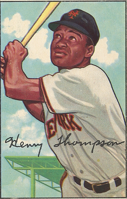 Description: Cropped from original image. Henry Thompson, Outfield, New York Giants, from the series Picture Cards (no. 249) Issued by Bowman Gum Company Date: 1952 Medium: Commerical color lithograph Dimensions: sheet: 3 1/8 x 2 1/16 in. (8 x 5.3 cm) Classification: Prints Credit Line: The Jefferson R. Burdick Collection, Gift of Jefferson R. Burdick Accession Number: Burdick 327, R406-6.235