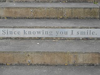 Description: "Since knowing you I smile": part of the "Word Sculpture" at Hanley Park , Stoke-on-Trent, England.