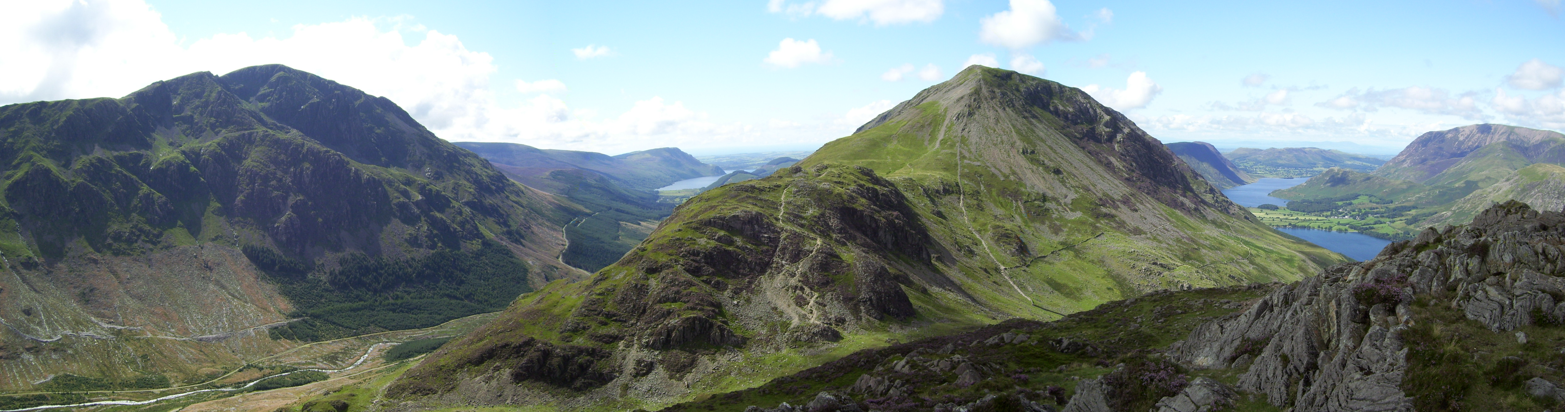 Description: This photo depicts the view of: High Crag, Pillar, Buttermere and Crummock Water from Haystacks