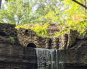 Description: photo of Hidden Falls in St. Paul, MN, after rainfall when storm water drain provides water for the falls.